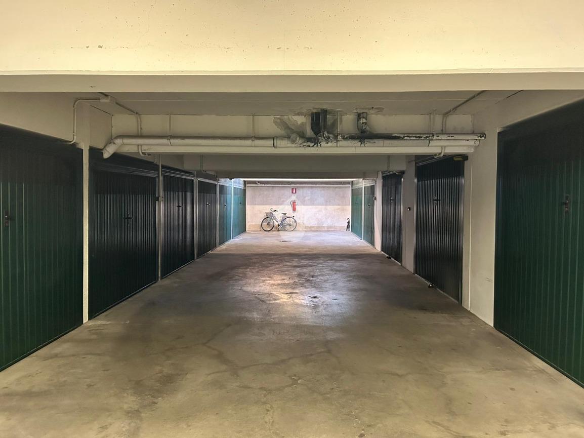 Il box ha una superficie di 15 m², con larghezza e profondità ideali per ospitare comodamente un’auto di medie o grandi dimensioni, lasciando anche spazio per scaffalature laterali. L’accesso carraio è automatizzato con telecomando e immette in una corsia di manovra ampia, che consente manovre semplici anche ai veicoli più ingombranti. La porta basculante è solida e in ottimo stato.